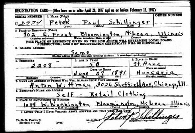 P. P. Schillinger's wife, Josephine, was my mother's aunt. Schillinger was our immigration sponsor. We lived for a time at the Schillinger home at either 701 or 702 east Front, a neat place now considered a historic home. Then, we moved to one of Schillinger's buildings at 305 W. Monroe. Yeager's son's wife, Barbara, was my mother's first cousin.