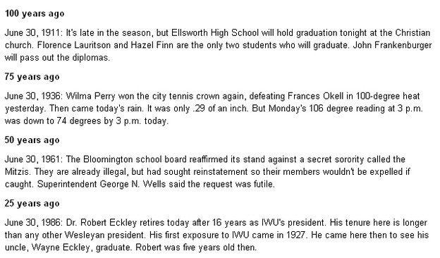 I see, from your article, Miss Okell was a pretty good Tennis player. If you knew her or saw her, you would have a hard time wondering how she could hold a racquet, let alone play tennis. She was a Sunday School teacher I had at one time. The class also had Sharon Green, Larry Leipold, Tim Schmidt, and a few others I'll have to look up. What a Hoot.